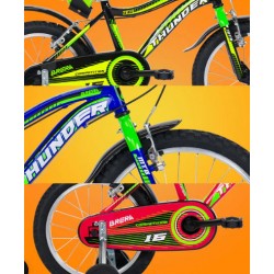 Sono tre i colori della THUNDER: blu, nero e rosso, tutti e tre personalizzati da dettagli grafici in tinte super flash che seguono la forma ondulata del telaio. Tanto che al tuo bambino sembrerà quasi di cavalcare un’onda.